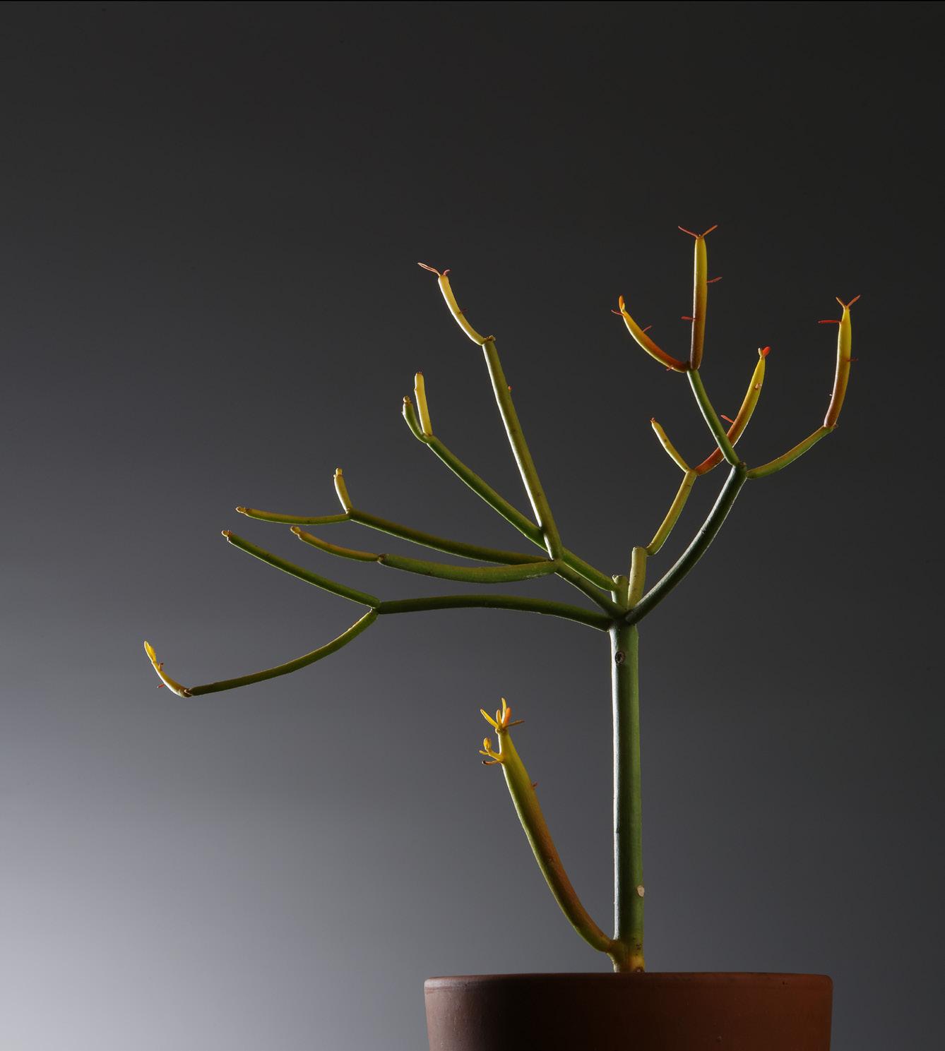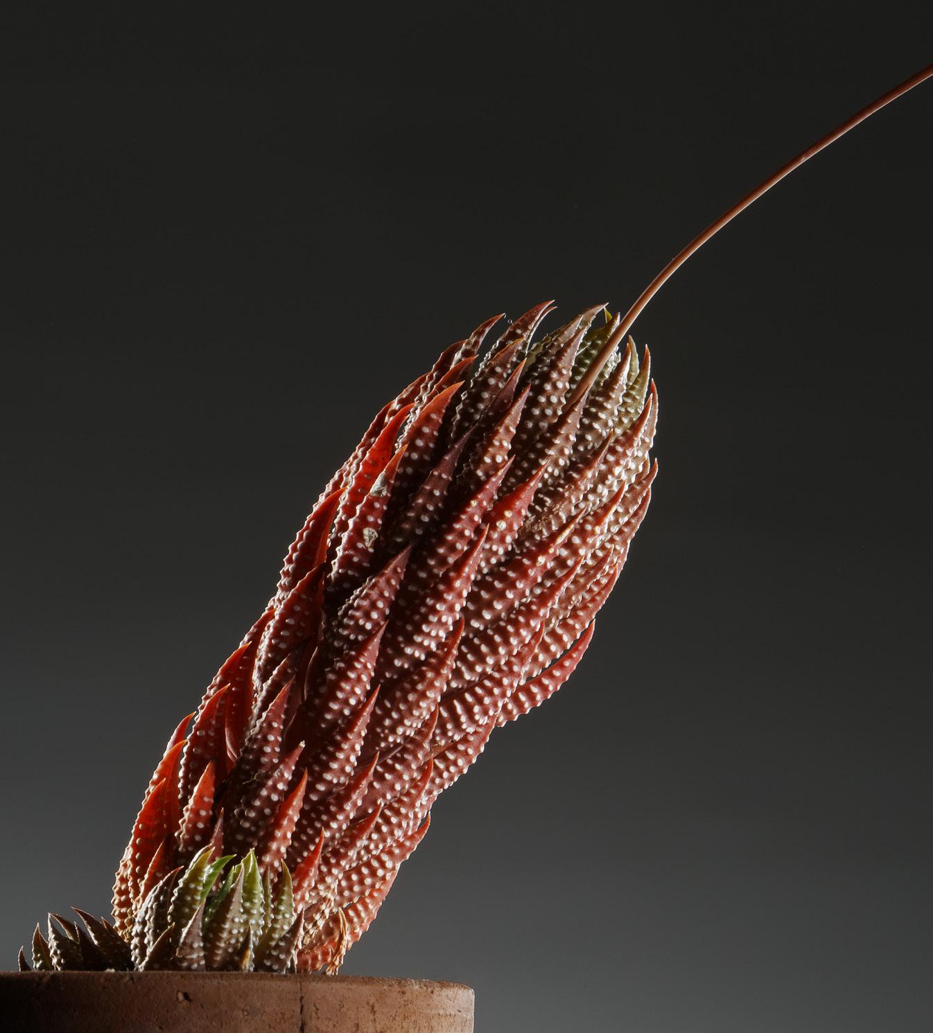 My approach is formal – not unlike that of a portrait photographer – by using controlled lighting and a flat, neutral background, I try to capture and dramatize the character of the plant.