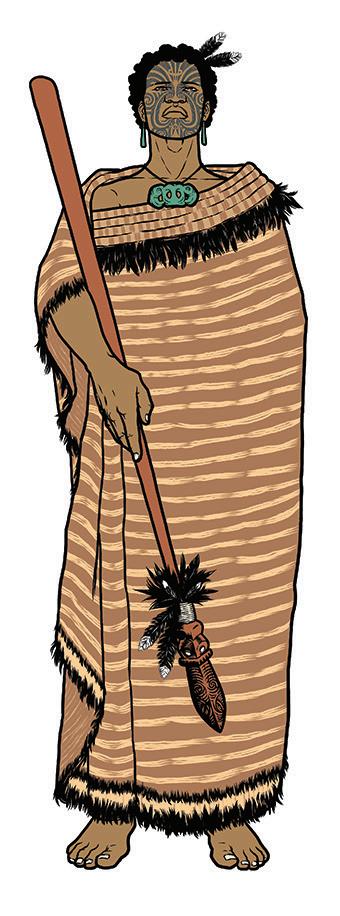 The kōwhaiwhai designs on the cloak represent the currents of the sea which flow in and out of the Moutere Estuary daily with each tide. They also represent the pūpū takarepo which live in the mud.