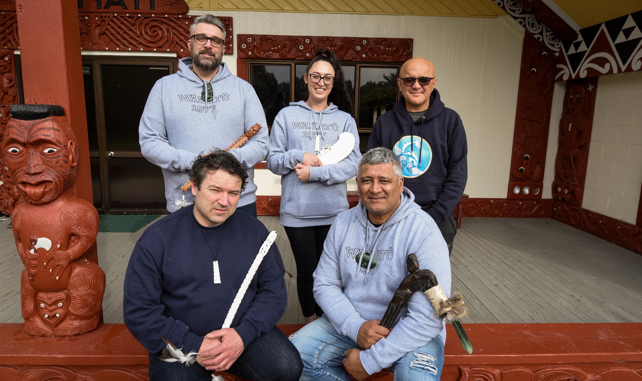 Te Rākau Pakiaka 2023 From top left: Matiu Jennings, Kate Reddock, Te Ahu Rei, Grant Joyce and Brendon Rei. Photo Credit: Melissa Banks