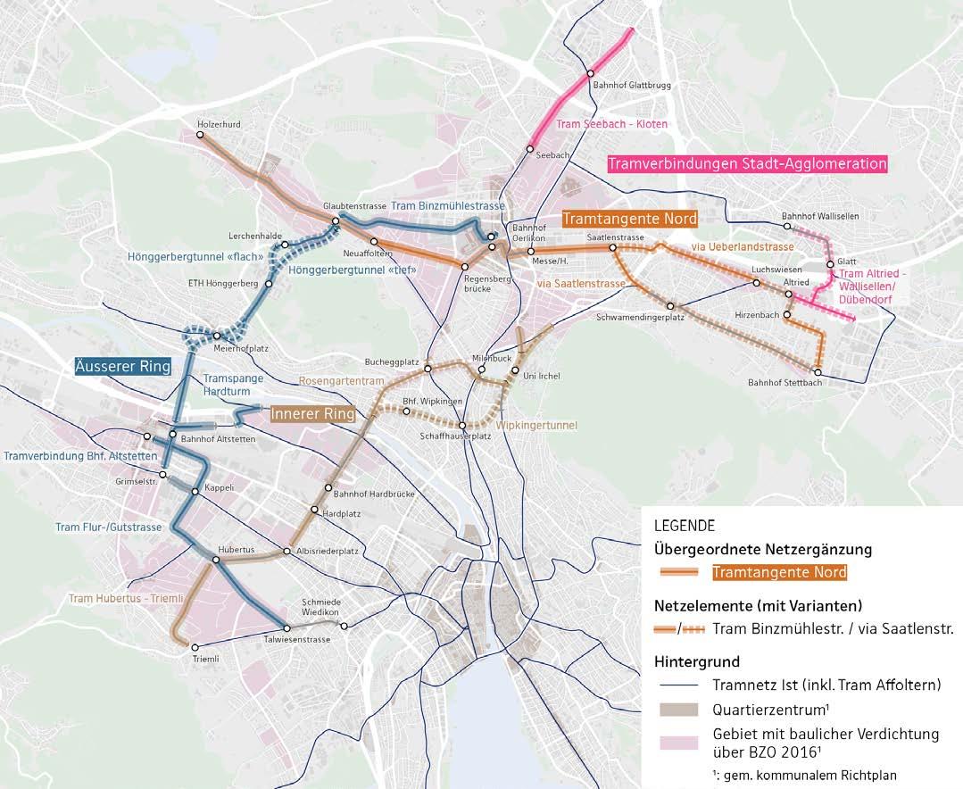 Among the projects set to be built in the next 16 years are Tramtangente Nord from Messe to Neuaffoltern and a new line Tram Affoltern to Holzerhurd, while short extensions are planned from Altried to Wallisellen/Dubendorf.