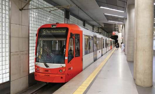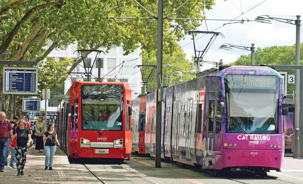 COVER: A KVB K4000 pair with a line 1 service on 26 July 2024 at Deutzer Freiheit on the east-west axis of Cologne’s light rail operations. Neil Pulling
