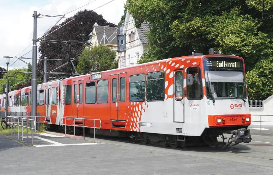 COVER: Stock with over 40 years of service life, Bonn's Düwag B100S 8454+8378 head south from Clemens August Straße on the Rhine riverside in Königswinter on 28 May 2025. Neil Pulling