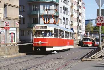 17. A cavalcade of historic and modern vehicles that only a city such as Praha could muster – in this case with locally-built Tatra products as far as the eye can see. In the lead is T2R 6003, followed by the first T3 from series production (6102) and production models 6149 and 6340, ex-Bratislava K2 articulated car 7000 and T3SUCS 7292. Mike Russell