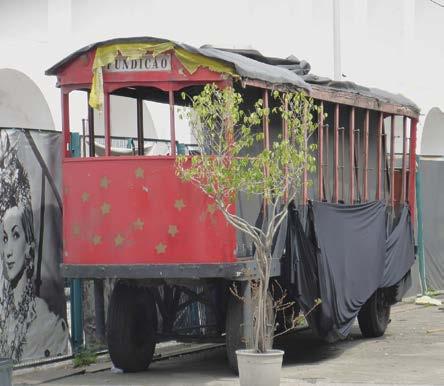 An item I discovered at the base of the aqueduct was this rubber-tyred tram body (pictured). It has all of the features of one of the original cars, and the amount of decay in the woodwork suggests that the body was genuine, elderly and almost certainly from an original tramcar. Details of the underframe too suggest that it was original. What its purpose was I do not know, but it may have been used for carnival processions and events.