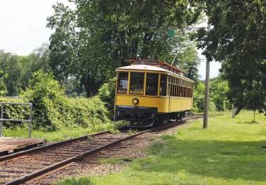 Tram 10 was built in 1913 by the St Louis Car Company as a typical small, doubleended car run by smaller cities in the first decades of the century; this example was operated in Winona, Minnesota, by the Mississippi Valley Public Service until that system was abandoned in 1938. It appears in a striking livery of orange and cream with off-white triangular flares to the dash panels. Operation at Excelsior is more restricted than at Como-Harriet. The 2025 timetable provided for service on Thursdays between 12 June and 2 August; Saturdays 3 May27 September: and Sundays 25 May-21 September. Fares are to the same scale as at Como-Harriet.