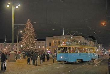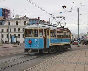 After leaving the loop at Centralstationen the service travels via Brunnsparken to Kungsportsplatsen, where cars mingle with assorted more modern tramcars on the regular network to Korsvägen and on to Liseberg, serving the amusement park. Arguably the most impressive operation is in the pre-Christmas season from early November to late December, when the historic cars leave Gårda depot at dusk, and provide a ten-minute service on line 12 for two to three hours, with last journeys running at around 19.00. They are like stately galleons with lights ablaze gliding effortlessly along the city’s main shopping street.