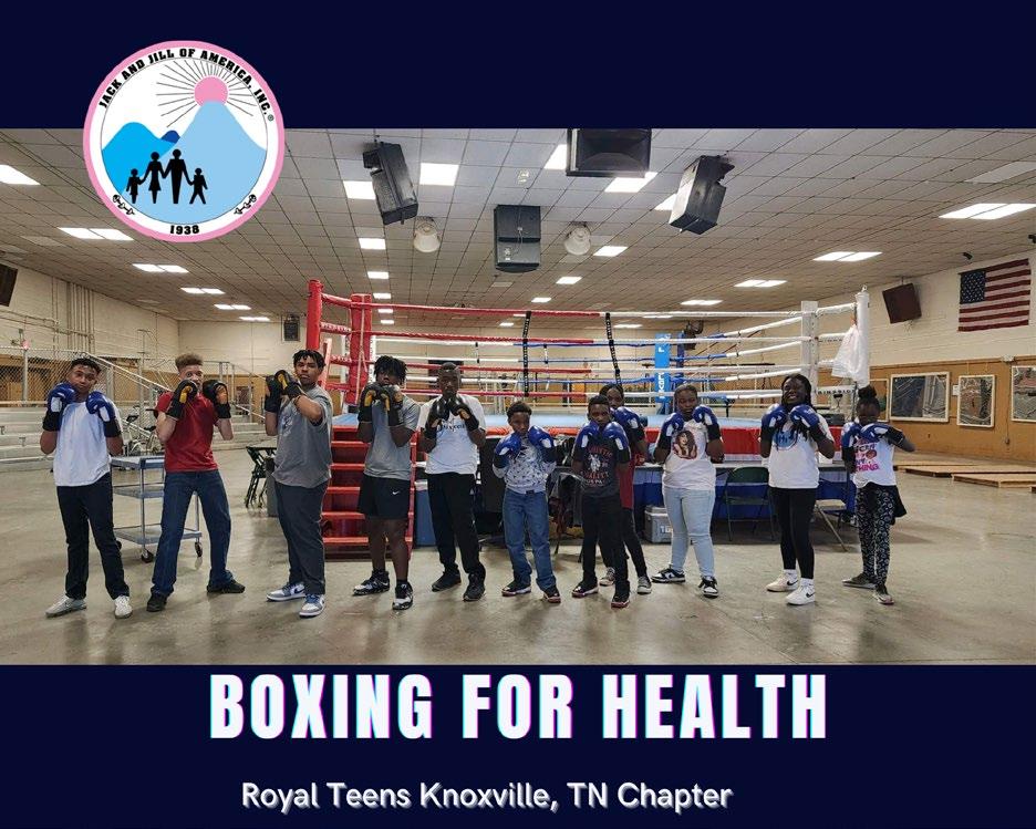 During the month of April, Jack and Jill of America pauses to recognize Health & Fitness. On April 2, 2023, the Royal Teens of the Knoxville Chapter hosted a ‘Boxing for Health’ event. This exciting event was held at “Ace” Miller Golden Gloves Arena in Knoxville, TN. The event was attended by 11 teens who received one-on-one boxing lessons from professionals of the field. The lessons were geared toward personal fitness and self-defense techniques. The session lasted for two hours which allowed for instruction, practice, employment, and camaraderie amongst the teens. Additionally, Royal Teens set goals to become a “SER-tified” Teen chapter. They joined forces with the teens from our “Buddy” chapter of the Chattanooga chapter for a Health & Fitness Challenge. Chattanooga Teens were charged to perform an independent group health activity and track it on a shared Google document to further permeate the importance of health and wellness.