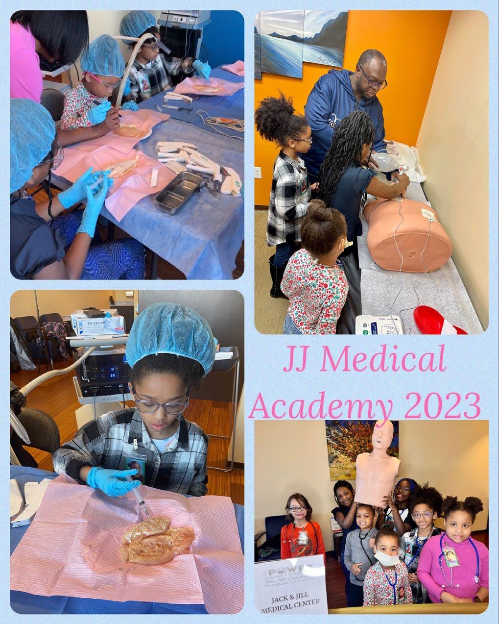 The Adventurous Leaders participated in a mock Surgical Residency program at a doctor’s office where they performed educational games/lessons via conducting ‘surgery’ tactics to progress their immersive learning and expand their understanding of the health profession, anatomy, as well as various health and wellness issues impacting the black communities. Jack & Jills learned about human anatomy, overall body health, obesity, diabetes, blood pressure, asthma, sickle cell, and strokes, among other health matters. Getting hands on tactile opportunities to expound on what they learned, the kids used medical equipment to harvest and transplant life sized organs, take each other’s vitals, recreate parts of the respiratory system, use sensory bins filled realistic breakdown of blood components, and even remove brain ‘tumors’ by dissecting brain molds, all before culminating with a traditional “White Coat Ceremony” where they received personalized white coats, stethoscopes, and demonstrated their public speaking skills with their individual acceptance speeches.