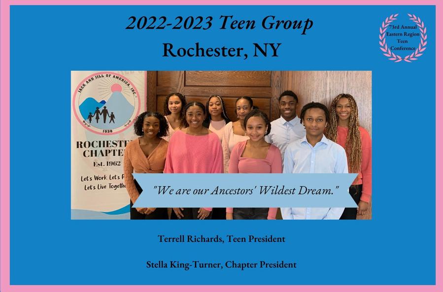 The Regional Teen Board has been working quite hard leading up to Teen Conference and I cannot wait for you to see what we have prepared. This year’s theme is We Our Ancestors' Wildest Dream To me, this means living up to what our ancestors wanted for us through and within the different activities that we do, such as school, sports, community service, etc. Everyday I put my interpretation into action and strive to live up to my Ancestors' Wildest Dream and I am so thankful for the role Jack and Jill has played in letting me do so.