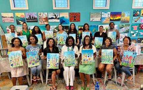 Mom Karva and her husband Sam are preparing for their son, Sterling (Alex), to start his freshman year at Vanderbilt University where he will major in Economics. To celebrate this milestone for Mom Karva and her family, WCAC moms gathered on July 22nd at Paint & Canvas in Nashville.