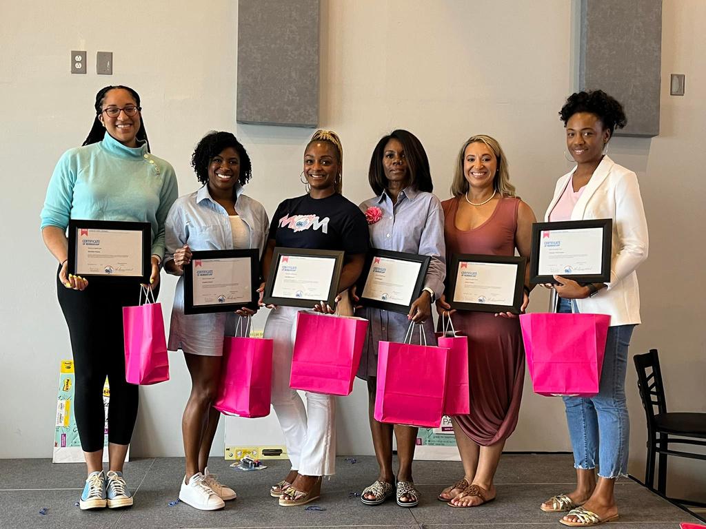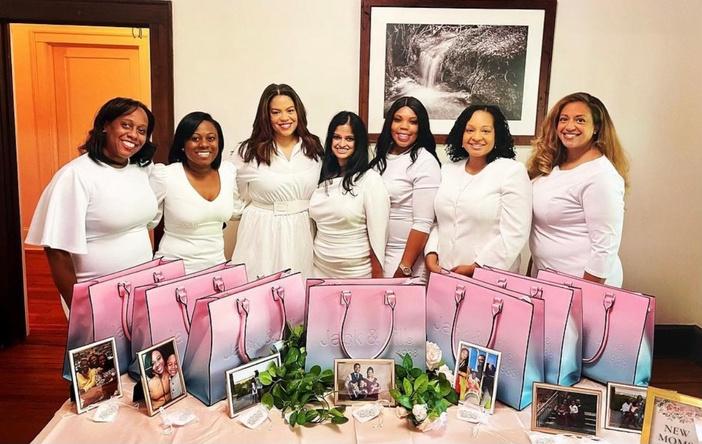 Welcome New Mothers (pictured left to right): Nicole Ruffin, Christina Cage, Allison Toich, Jocelyn Joseph-Howard, Asha Hope, Francesca Black, Esq , and Tiffany Powell