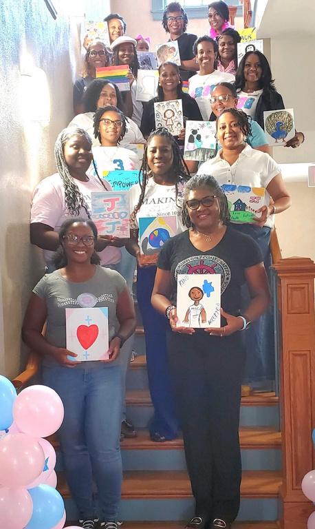 (top,lefttoright)Timekeeper,KeishaShaw;ProtocolChair,Erica Griffin;FoundationChair,CatreciaBryan;LeadTeenSponsor, LadessaY.Mitchell; Co-ProgrammingDirector,TaunshaeBryant; Historian,JenniferReed-Askey;Co-ProgrammingDirector,Chantal Moore;Parliamentarian,RhondaBriggins;Chaplain,Candance Johnson;andSergeantatArms,NkeishaSmith.