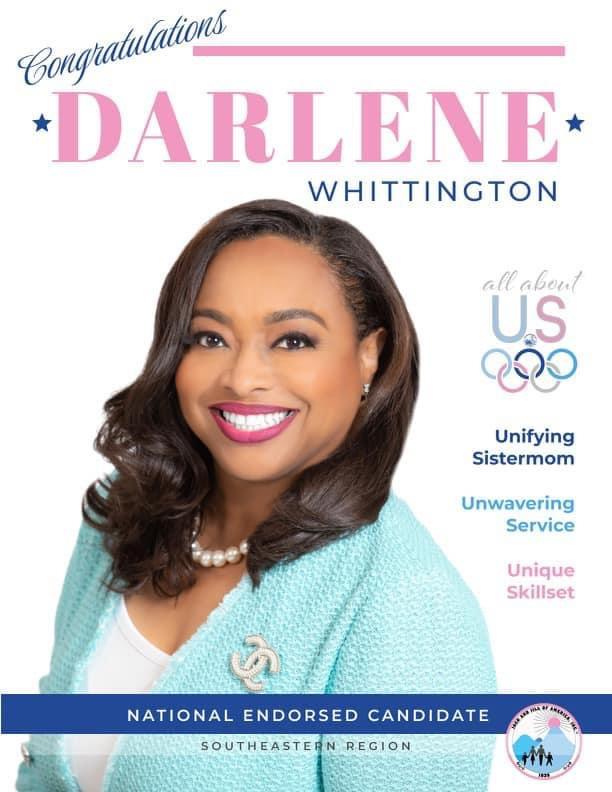 Greater Metropolitan Atlanta Chapter salutes our own, Darlene Darlene Whittington, Whittington, outgoing Regional Director and newly elected National Endorsed Candidate. outgoing Regional Director and newly elected National Endorsed Candidate.