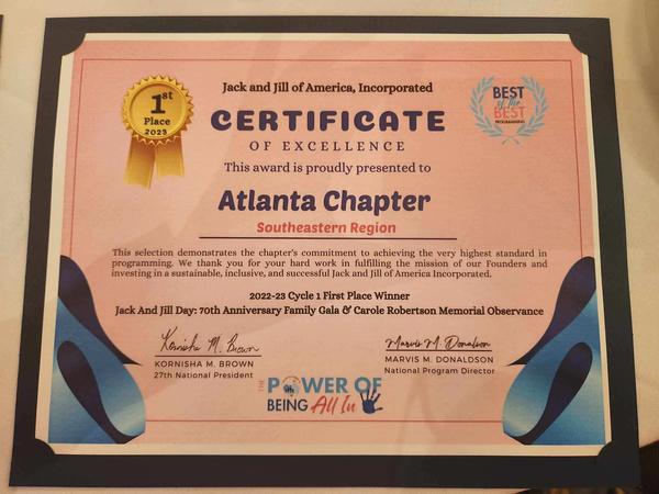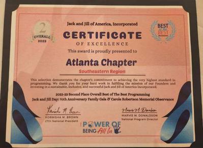 TheAtlantaChaptermothermembersascendedupontheVolunteerstate andproudlywalkedawaywithseveralawards.Thechapterplacedfirstfor fundraisingformotherscontributionsandthirdforpercapitagiving, havingdonatedover$200,000tovariouscharitiesacrossthecityofAtlanta andTheJackandJillofAmericaFoundation.