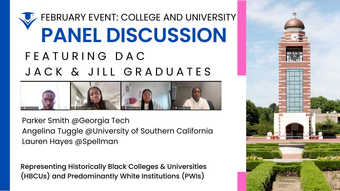 TheDunwoody-AtlantaChapterLiveOak Teensmetwithapanelofcurrentcollege teensattendingbothHistoricallyBlack CollegesandUniversities(HBCUs)and PredominantlyWhiteInstitutions(PWI)to discusscollegelifetoday. Thestudentpanel includedErinCarpenter(JunioratanHBCUMorganStateUniversity),LaurenHayes (FreshmanatanHBCU-SpelmanCollege), AngelinaTuggle(FreshmanataPWIUniversityofSouthernCalifornia)&Parker Smith(FreshmanataPWI–GeorgiaTech University).Theysharedcreativewaystopay forcollegebeyondtraditionalloans,suchas grantsand/orwork-studyprograms.During thepaneldiscussion,theytalkedabout collegelifeandtheobstaclestheyfacein today’senvironment.Theteenslearned strategiesforsuccesstogrowandprosperas youngadultswhilelivingindependently.