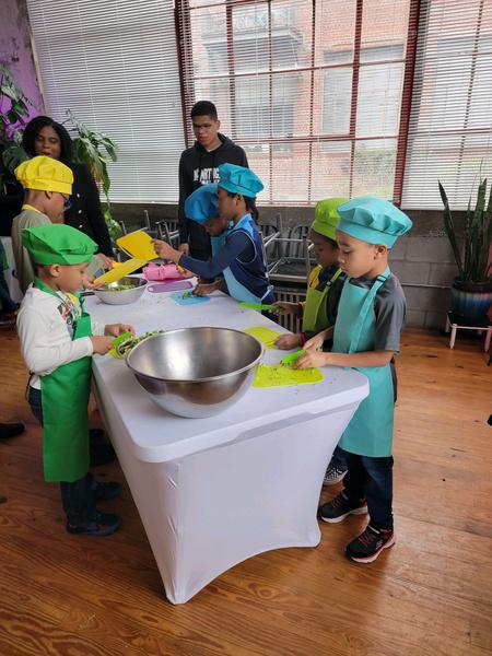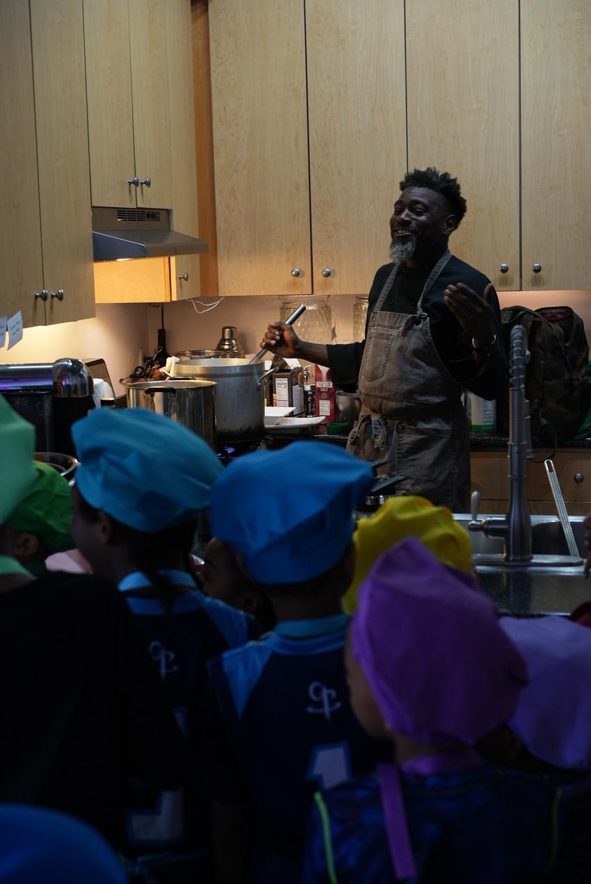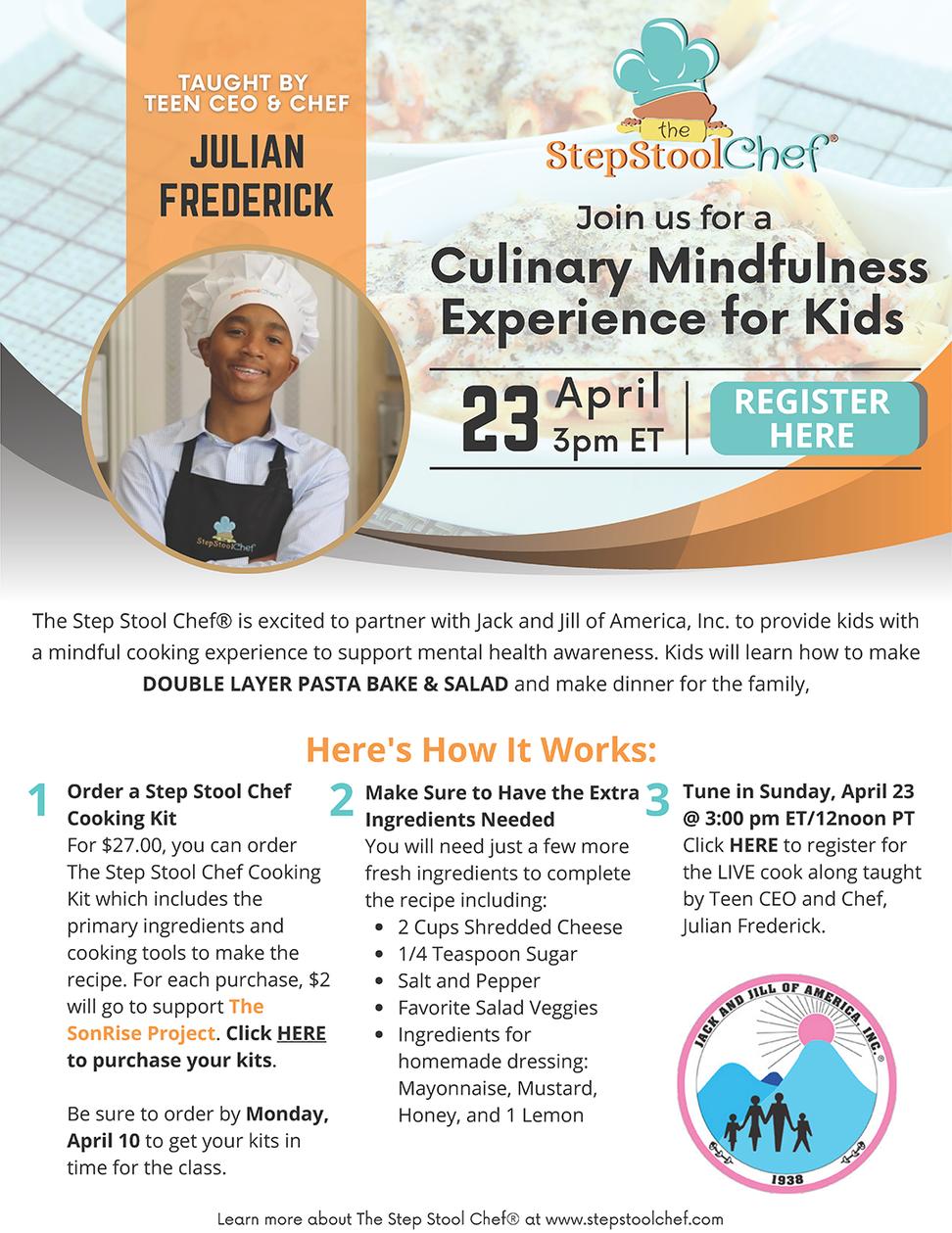 On February 11th, 2023, twenty-three Fayette County Area Chapter Tots and Tweens engaged in a comprehensive cooking experience focused on the educational thrust, STEAM, hosted by Moms Tonia Durden, Kimberley Bugg-Allen, Saleemah Jackson, and Selena Owens. Chef DePhon Robinson, having grown up as a Jack and Jill member, and supporter of creating programming that supports the healthy and holistic development of children, led FCAC Tots and Tweens through a series of interactive culinary experiences. FCAC Tots and Tweens discussed the art, math, and science of chopping and roasting broccoli; seasoning and brining chicken and how to effectively measure and blend ingredients to create homemade alfredo sauce. With the tip of their toque and the chop of their cutting utensils, Tots and Tweens delighted in working together to create a tasty dish of chicken alfredo with roasted broccoli for all to enjoy-Yum. Without a doubt this culinary experience was a memorable one for all!