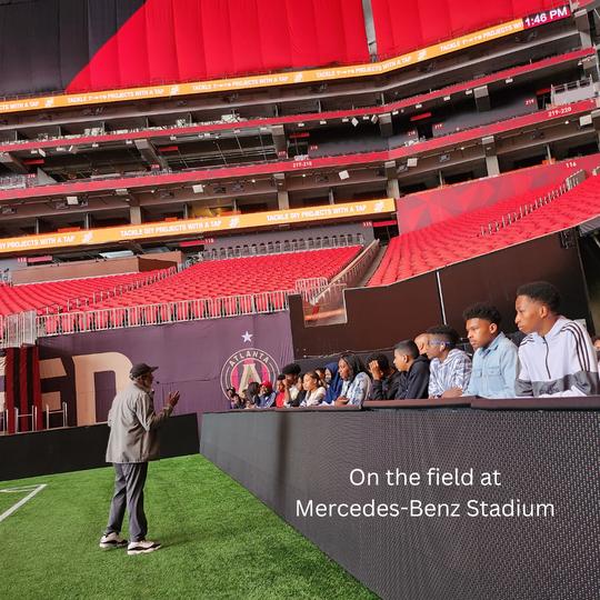 OnMarch11th,2023,theGreaterNorthAtlantaJr.TeenstouredMBSandhadtheopportunitytolearnaboutSTE(A)M careersandleadershippositionsinthesportsindustry. Thegoalofthetourwastodemonstratethenumerous,varied opportunitiestoworkinthesportsindustrywithoutplayingasport. Theywereabletoseethebehind-the-scenes operationsofthestadiumandlearnabouttherolesofvariousprofessionals,includingarchitects,engineers,and designers,whoworkedtogethertocreatethisstate-of-the-artfacility.