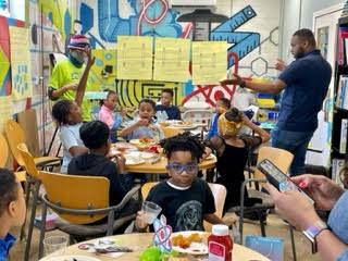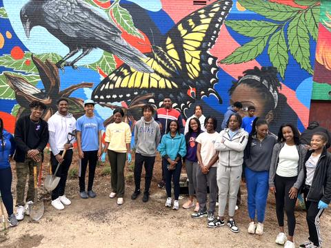 The Teens started by taking a guided tour of the rehabilitated district. The first stop included a twenty-minute tour of The Wood followed by Duquette and Woodlawn Marketplace Street Market. Following the tour, the teens met with Ms. Mashonda Taylor, Executive Director at Woodlawn United and Community Strategist & Capacity Builder. Ms. Taylor discussed topics including revitalization versus gentrification, equity and inclusion and an overview of Woodlawn United. The teens engaged in conversation that provoked interaction as well as discussions related to future options to promote a holistic revitalization. Lunch options included Slutty Vegan or Bayley Catering which are Black Owned Businesses. Finally, the teens participated in a community service project that included planting flowers, refinishing, and cleaning murals to enhance the beautification in this well-deserved, revitalized community.