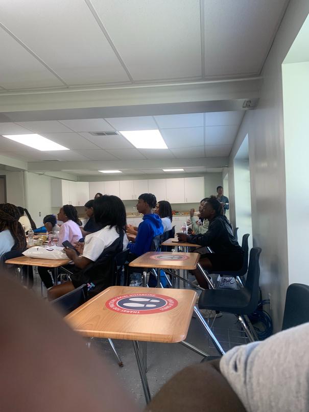 Inadditiontothetour,theJr.TeensheardfromRyanHolmes,ManagerofGuest&TeamMemberServices. Mr.Holmes explainedhowhisdegreeinInternationalRelationsfromMorehouseUniversitypreparedhimforhispositionwiththe Falcons/UnitedFCorganization.