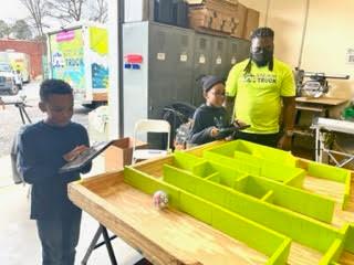 EachchildwasgivenabookonAfrican AmericansinSTEAM,apersonalizedkey chain/nametagproducedbythefacility’s lasercuttingmachine,aswellasothercool STE(A)MTruckswag.