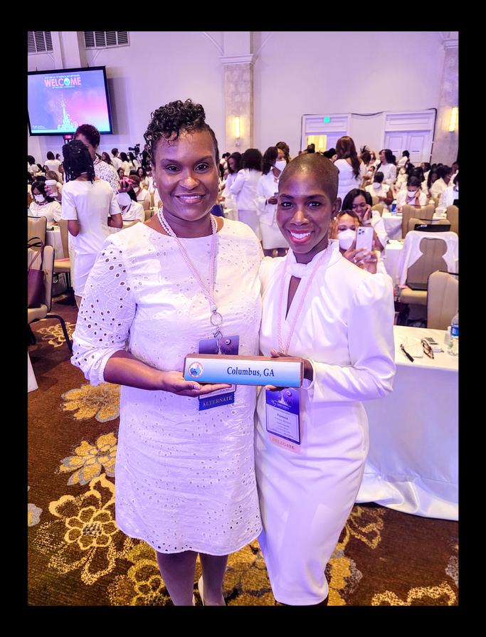 The Columbus, Georgia Chapte meetings held during the 45th N Convention, COLGA Mothers and that enhanced the experience for Kornisha McGill Brown, presided led Mothers from across the Natio re election as the National Preside leadership. While attending the c Chapter of which our submissi recognition for winning teh Min per capita and second place for Teen Foundation giving.