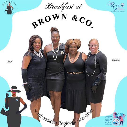 Members of the Montgomery Chapter convened in Orlando, Florida for the 45th Jack & Jill of America, Inc. National Convention from July 26-31, 2022. It was the first time the Convention was held in person since the start of the COVID pandemic. Highlights included Essence Magazine Editor in Chief Emerita, Susan L. Taylor’s Induction as an Honorary Member, performances by Ne Yo and Doug E. Fresh, and the reelection of National President Kornisha McGill Brown to a second term. Additionally, Montgomery Chapter President Nichole Thompson held the honor of chairing the 2022 Southeastern Regional Breakfast with the Tiffany inspired theme – “Breakfast at Brown & Co”. Southeastern Regional Moms looked gorgeous in black dresses and pearls. The Montgomery Chapter was named a “Five Star” chapter and received Blue Ribbon Bylaws and Digital Cheetah Officer Compliance honors. This convention allowed moms to rekindle old friendships and make new friendships while doing the business of Jack and Jill.