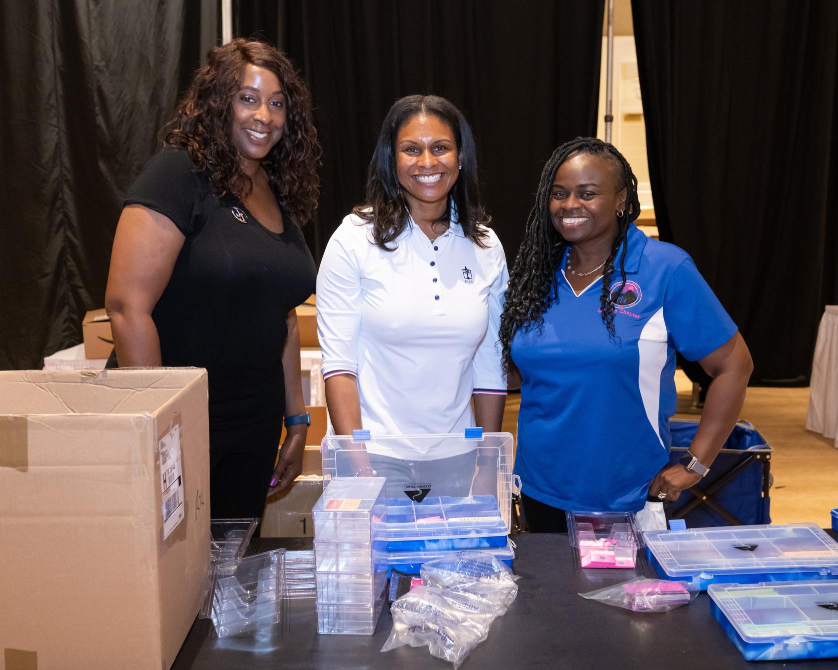 Chair Latisha Thompson (center) and Mothers of the Outstanding Orlando Chapter preparing to welcome Jack and Jill families from across the nation at the 45th National Convention Registration.
