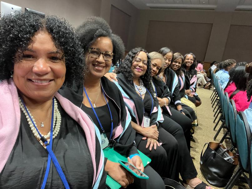CP Danielle Roberts, National Bylaws Committee; VP Jia Johnson Okeke, National Convention Plenary Committee; and CE Thkisha Sanogo, Opening Ceremony Committee. Most notably, we congratulated and celebrated our Chapter President, Danielle Roberts, who received her Pink Jacket for successfully completing the inaugural Marion Stubbs Thomas National Leadership Academy. The 45th National Convention owes us nothing! We came back on fire, to put out the fire of the incomprehensible injustices that are plaguing our community.