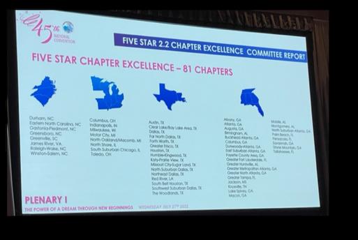 Birmingham Receives Another Five Star Chapter Award at the 2022 45th National Convention Chapter President (CP) Erica Edwards Lankford, Chapter Vice President (CVP) Krysten Holloway, Regional Programming Committee Chair (RPCC) Program Director (PD) Tammy Means and Regional Teen Foundation Chair (RTFC) Kennedy Means were busy accepting several national awards this year! In addition to serving on national committees, they did a stellar job of representing the chapter!