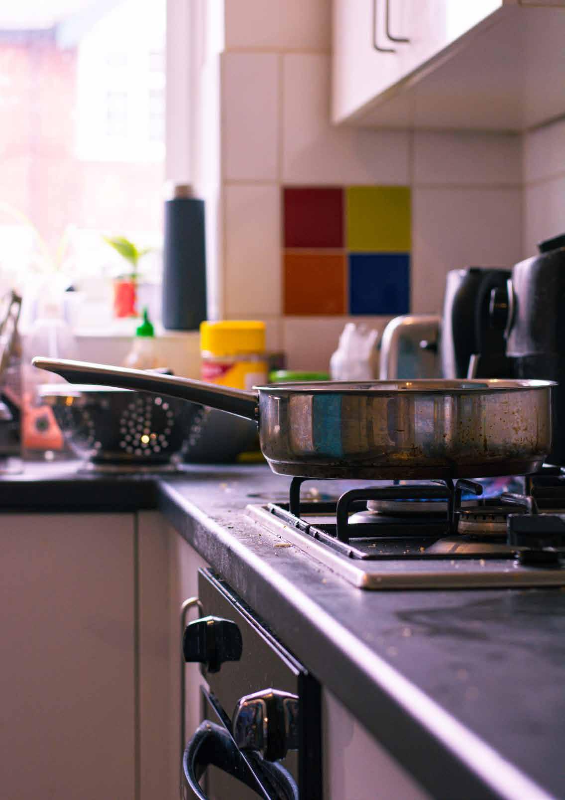 How might we design a solution which improves the student cooking experience by combating the minimal amount of usable space available in shared student kitchens.