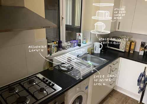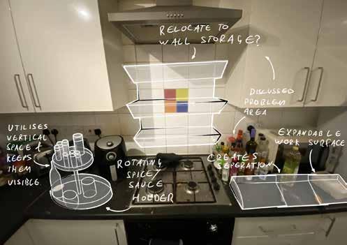 Design a range of organisers / storage solutions which maximise the amount of available worktop space in a student kitchen by relocating loose items which usually congregate on the worktop.