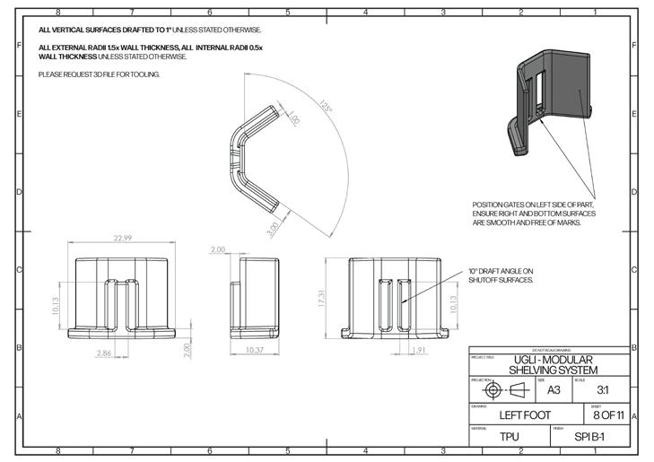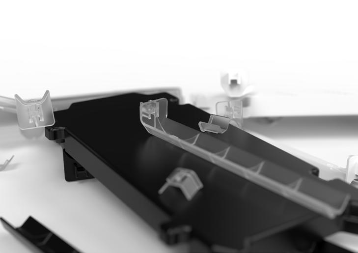 The design of the shelves is also heavily driven by the needs of the product and the limitations of injection moulding.