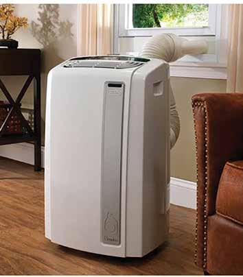 De’Longhi offers basic portable air conditioners equipped with features including LCD control panels, timer setting functions and a single hose configuration. At the top end, the company produces the Pinguino Care4Me, which is fitted with Wi-Fi connectivity and an artificialintelligence-supported thermostat to sense the room temperature and adjust accordingly. The models range in cost from $375 to $750 and can cool rooms from 400 to 700 square feet. You can