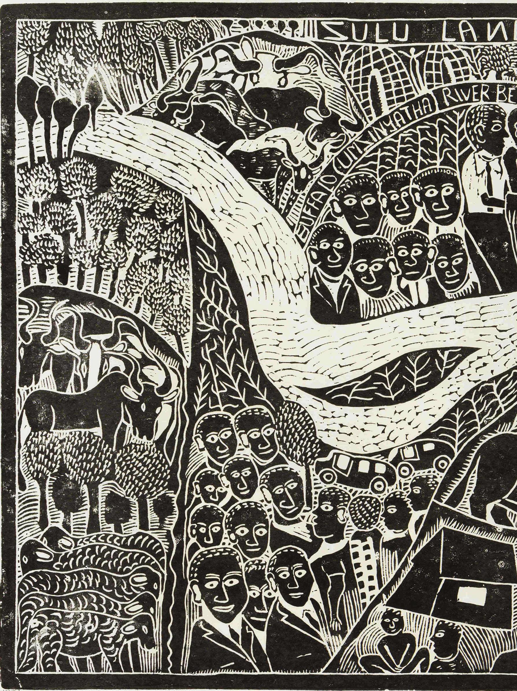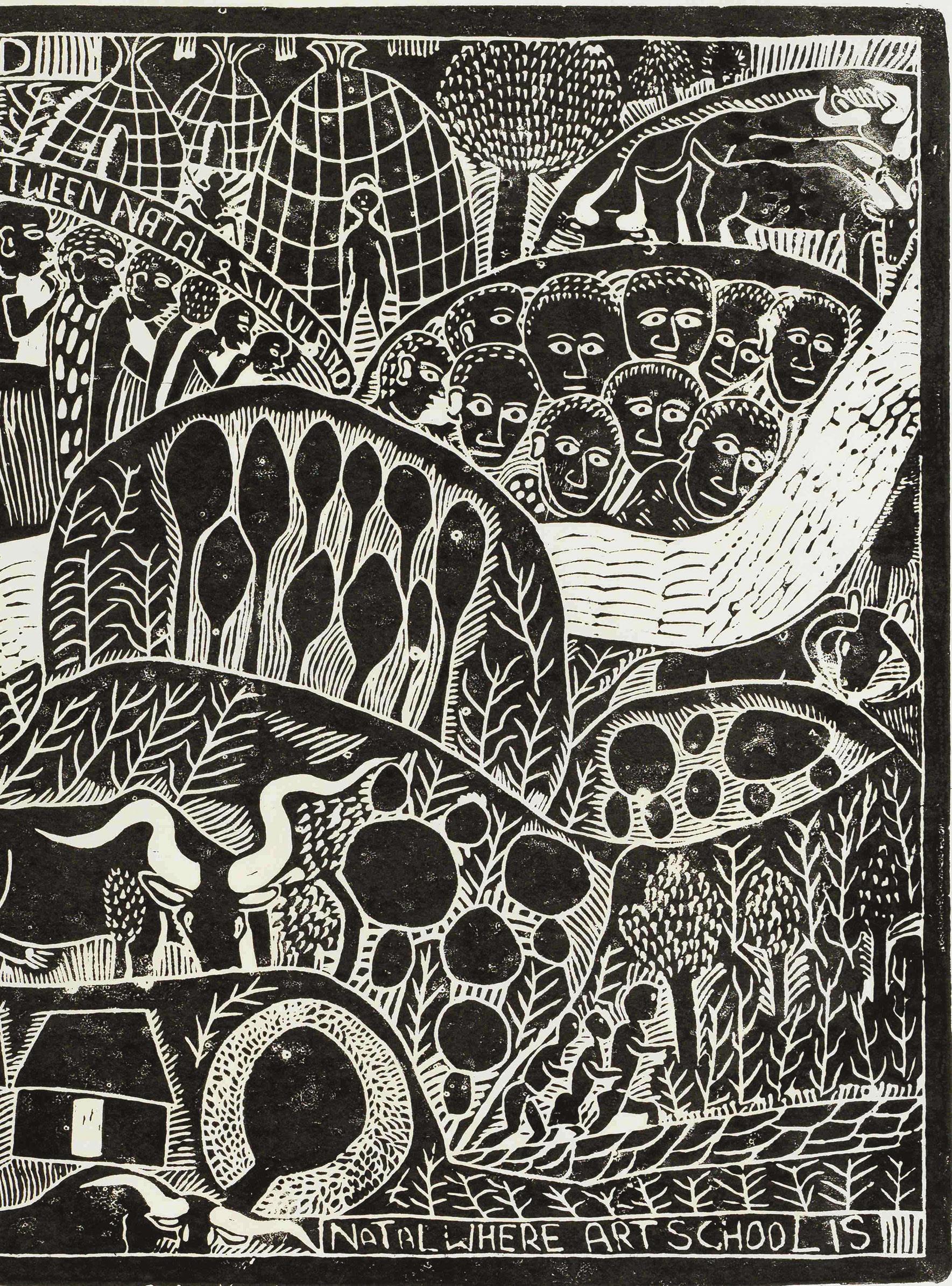 Sam Nhlengethwa 1955. No Grass II. Lithograph on paper. 35 by 50cm. Strauss & Co.