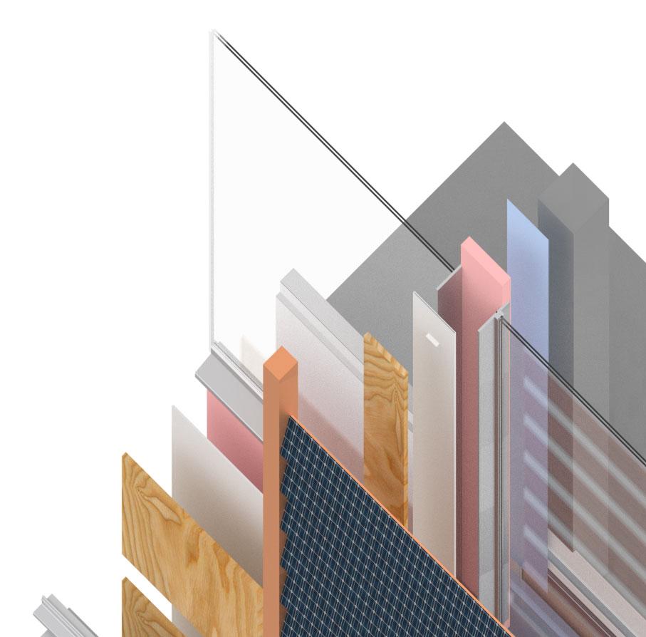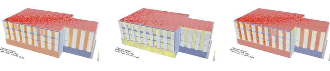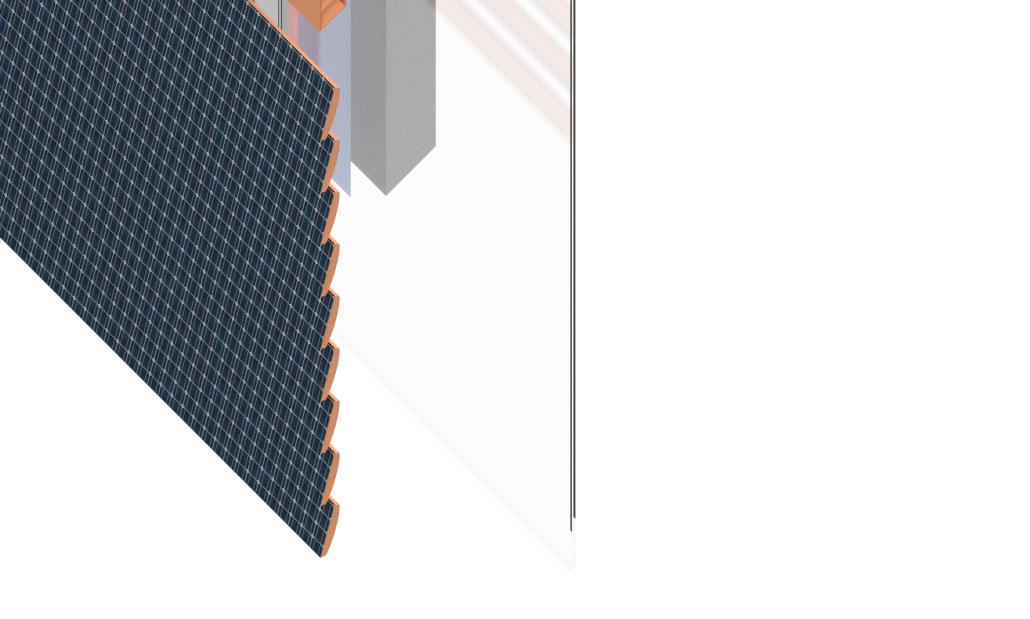 The goal of this project was to design a facade system based on performance analysis using the Ladybug plugin for Grasshopper to imporve the shading and thermal performance of the building. The system devised is a series of adjustable sliding panels with photovoltaic cells which can produce electric power for the building. The louvers themselves can also adjust to passively heat the building during the colder months and to provide shading during the warmer months.