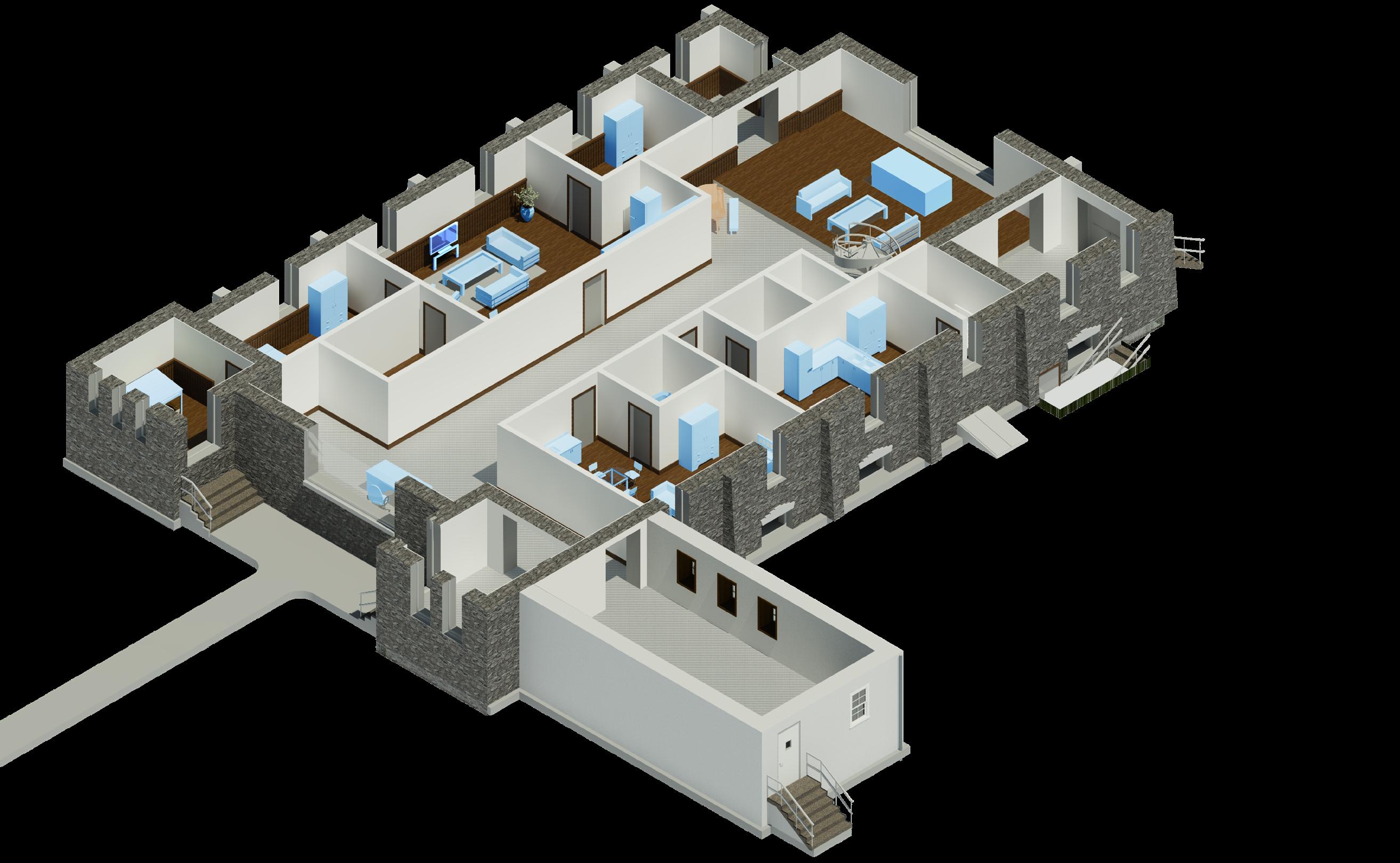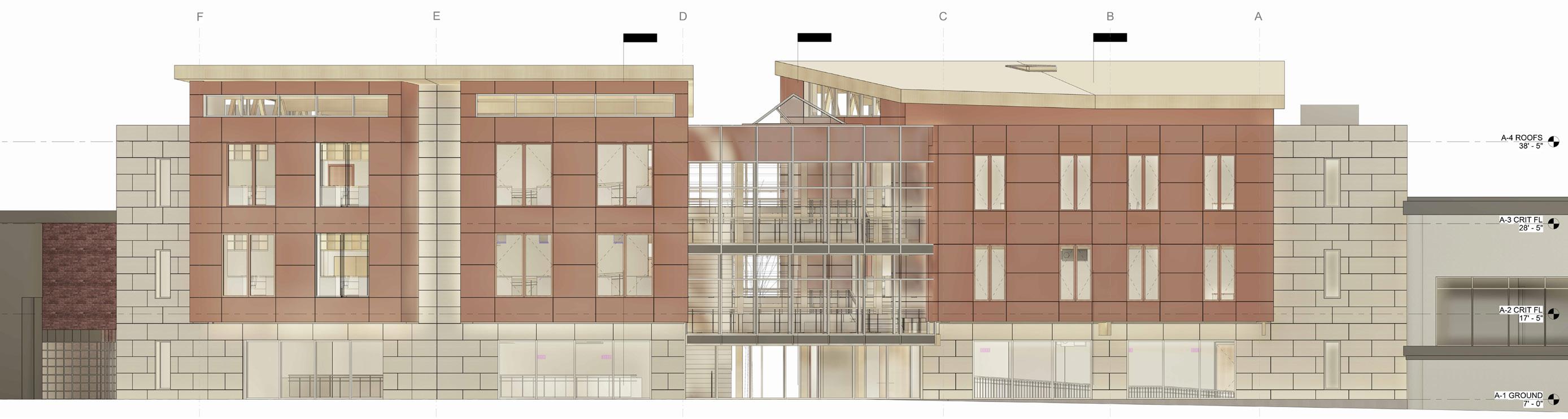 The JAW Block was a group project for the comprehensive studio at Jefferson which combines Design 8 studio and Tech 5 classes. The goal was to design a new architecture studio connected to the existing one. The studio helped me to develop my skills with Revit as it was our primary tool for all the technical aspects of the buidling. The building itself provides studios and pinup spaces for 8 new classes, classrooms, an auditorium, and a new materials lab. Overall, the building generally improves the experience of the users by carefully considering its orientation of the site, circulation of various user groups, and environmental comfort. The project exceeds in its programatic organization and its technical drawings.