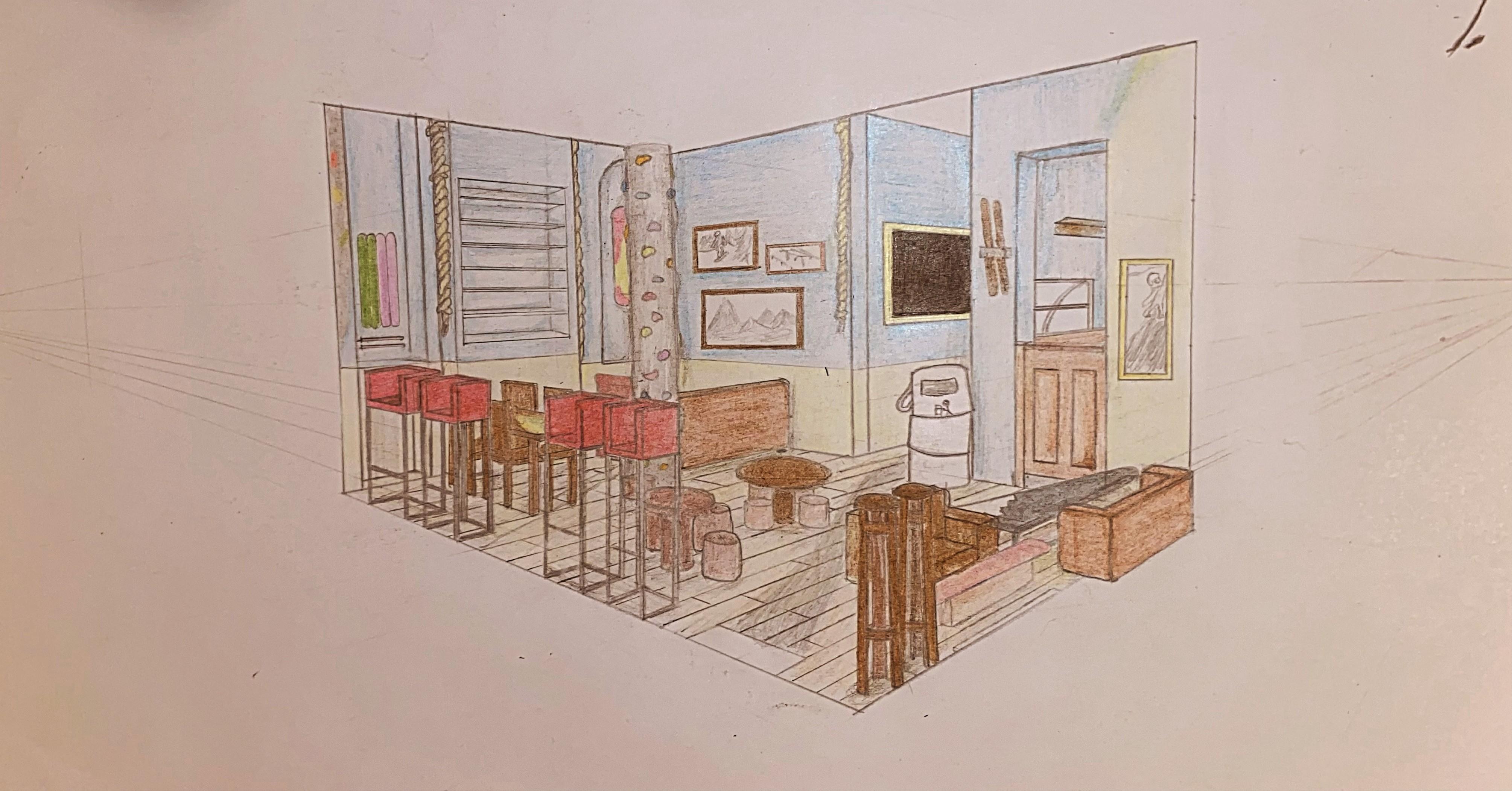 This is a perspective drawing to one of my projects, the domestic project where I have created a space for a user where I had to make a living space for a client and had to meet their needs. What is shown here is the office room of the house which outlooks onto the Isle of Skye.