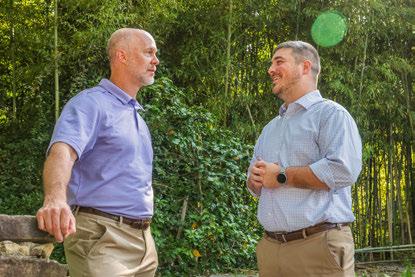 Alumni discuss discipleship with a senior student at JA’s outdoor chapel in Ashleigh Park. The chapel is located within the Raider Park complex.
