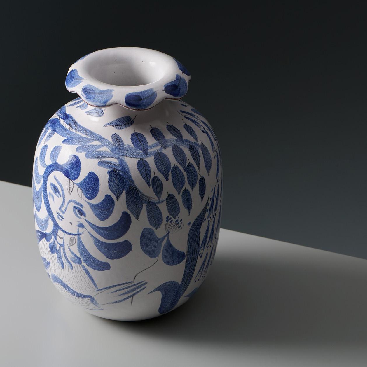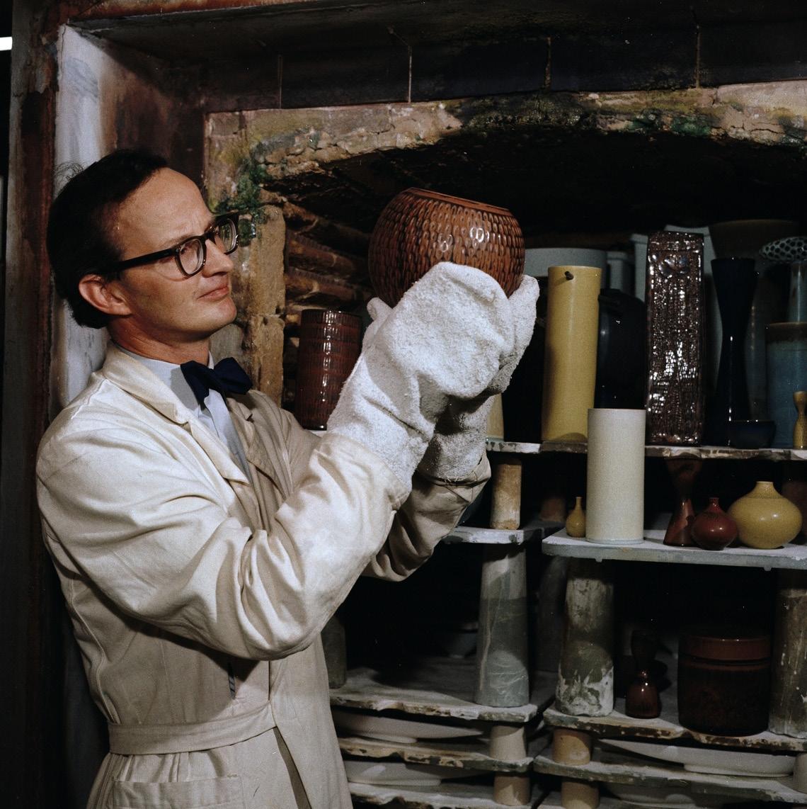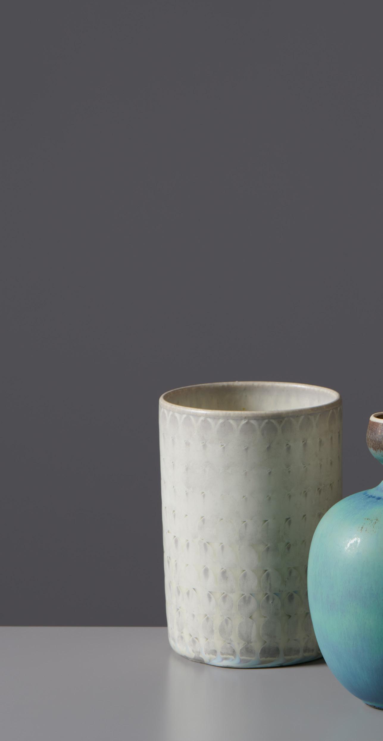 Just outside the city of Stockholm, on the islands of the archipelago, lies a ceramic factory dating back to the 17th century. It was here, at Gustavsberg, where Stig Lindberg spent most of his career. The Gustavsbergs Studio was founded in the early 1940s on the initiative of Wilhelm Kåge and Stig Lindberg themselves. The studio was intended to give artists a means of free expression, and provide them with the facilities to experiment. The studio was the one that gave Gustavsberg an association with ‘Design’, rather than industrial, ceramic products. It was at Gustavsbergs Studio that several well-known works were created, such as Kåge’s ‘Farsta’ series, or Berndt Friberg’s glazed ceramics. Under a different name, Gustavsbergs Studio continues to form a a source of inspiration, a platform for established artists, and a assembly point for creativity.