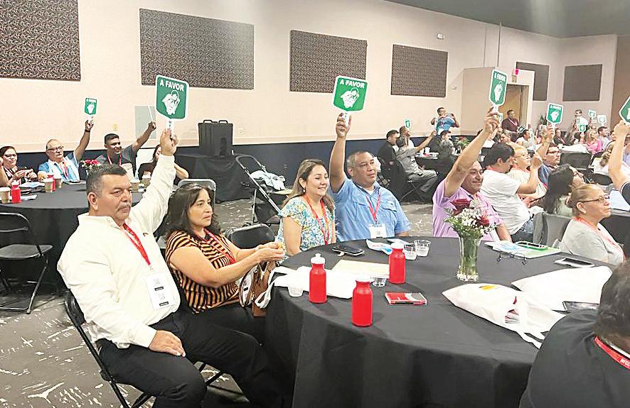 DENVER – Durante la XVII Convención Nacional del Movimiento Familiar Cristiano Católico se realizaron muchas actividades. (der.) La pareja de Maribel y Juan Melo, actuales delegados regionales, recibieron la bendición del Cardenal Christophe Pierre, Nuncio Apostólico en los Estados Unidos. (arriba) Se ve al matrimonio de Irma y Ernesto Sánchez, presidentes salientes de la región de Jackson, ejerciendo su voto durante las elecciones de los nuevos líderes nacionales. (Fotos del Padre Marco Sánchez, ST)