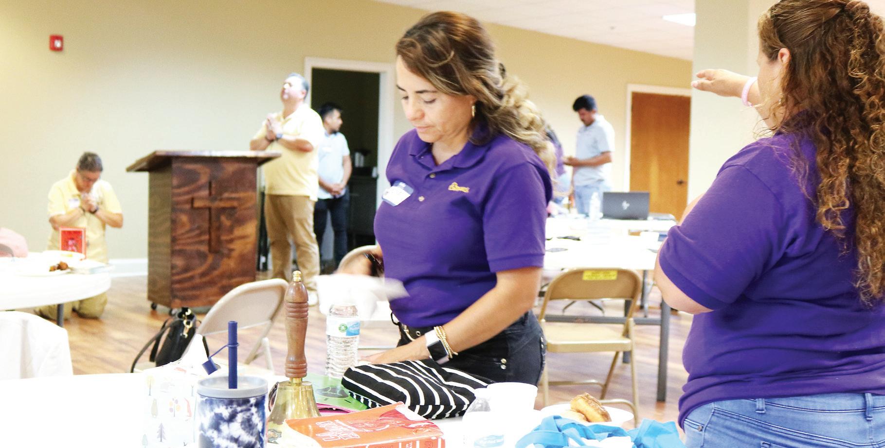 PEARL – Miembros de EMAUS Jackson de mujeres y hombres se reunieron el sábado 5 de agosto en el centro comunitario de St. Jude para recibir un taller para servidores con los misioneros Juan Carlos y Maggie López de EDESFA de Texas, convocados por Lorena Urizar, Irvin López y Ricardo Ruiz. Al dia siguiente varias parejas se reunieron en Santa Teresa Jackson para un conversatorio. (arriba) En las fotos se muestran momentos de oración, reflexión y alabanza, dirigidas por los misioneros Carlos y Maggie López, de Texas. (Fotos de Tereza Ma)