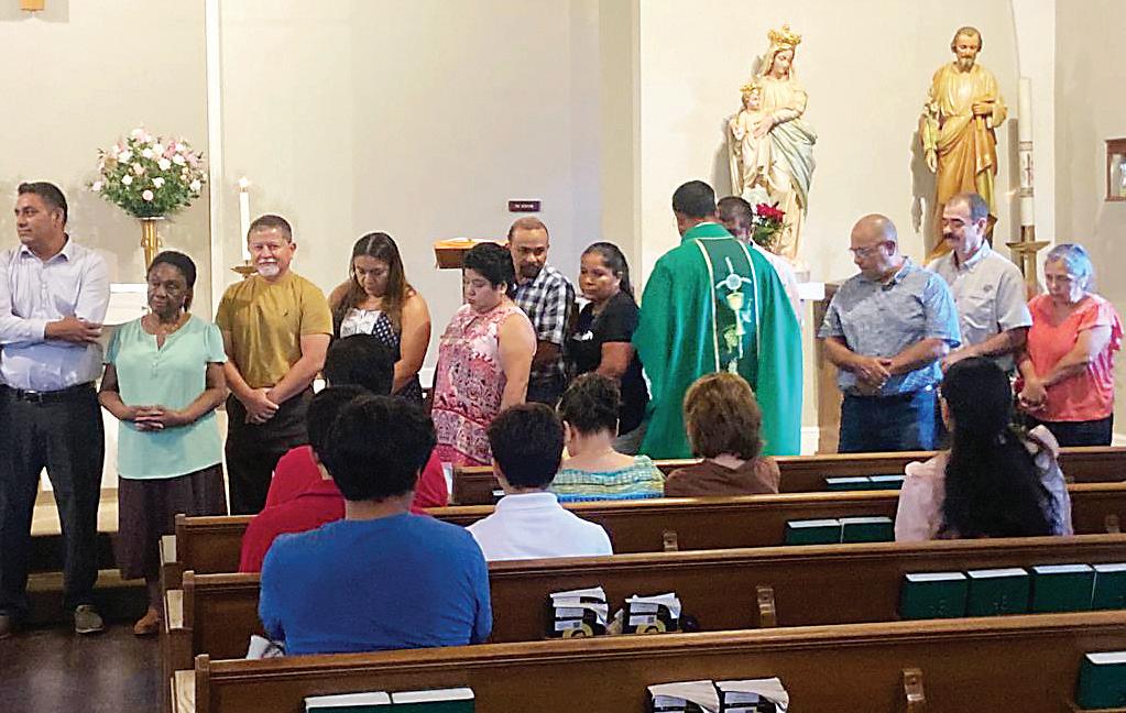 TUPELO – Por el Día de los Abuelos, el Padre Justin, (de espaldas) en Misa del dia 26 de Julio, da una bendición especial a todos los abuelos presentes de la parroquia de St. James. (Foto de Raquel Thompson)