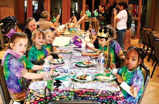– The PreK-4 and 5 classes are masked for Mardi Gras at St. Paul Early Learning Center. Pictured: MaryAtly Smith, Jonathan Speights, Nora Wallace, Barrett Stomps and Emery White. (Photo by Susan Irby)