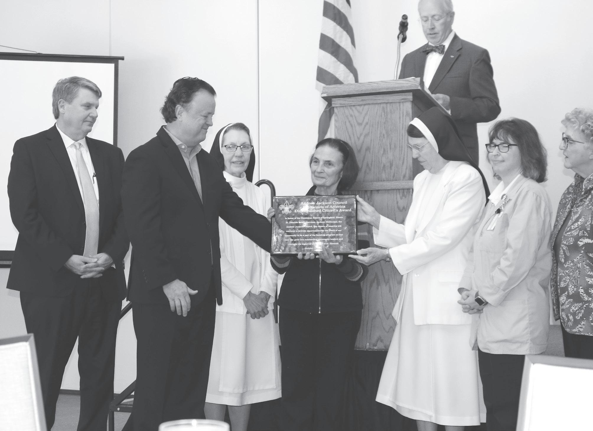 JACKSON – On Thursday, Oct. 27, the Andrew Jackson Council of the Boy Scouts of America honored the Dominican Sisters of St. Dominic with this year’s Distinguished Citizen Award at a luncheon held at the Jackson Country Club.