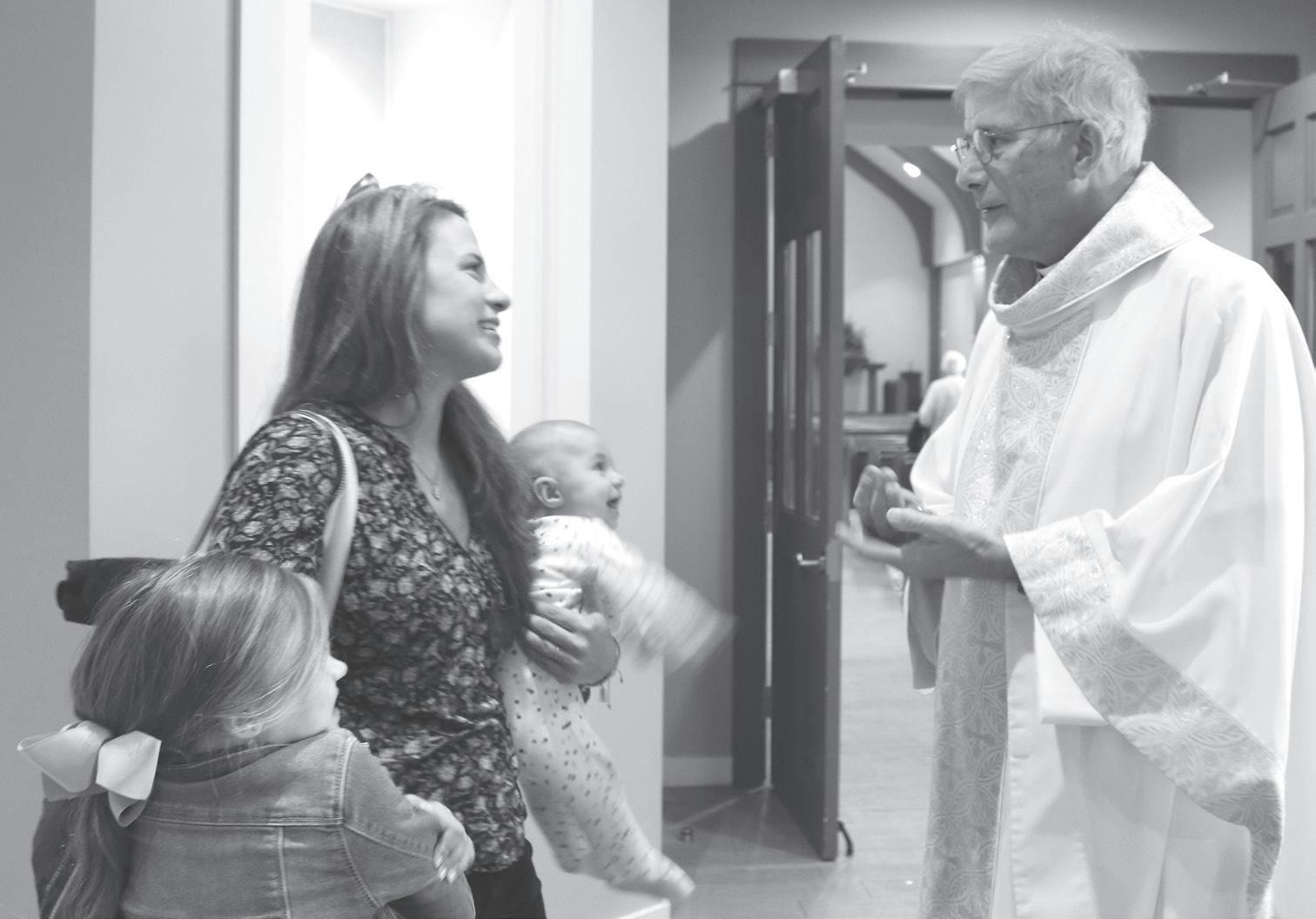 A 2011 graduate of St. Joseph Catholic School in Madison and of Springhill College to working profes sionally in Austin, Texas for a few years, new seminarian EJ Martin took an opportunity to talk to those gath