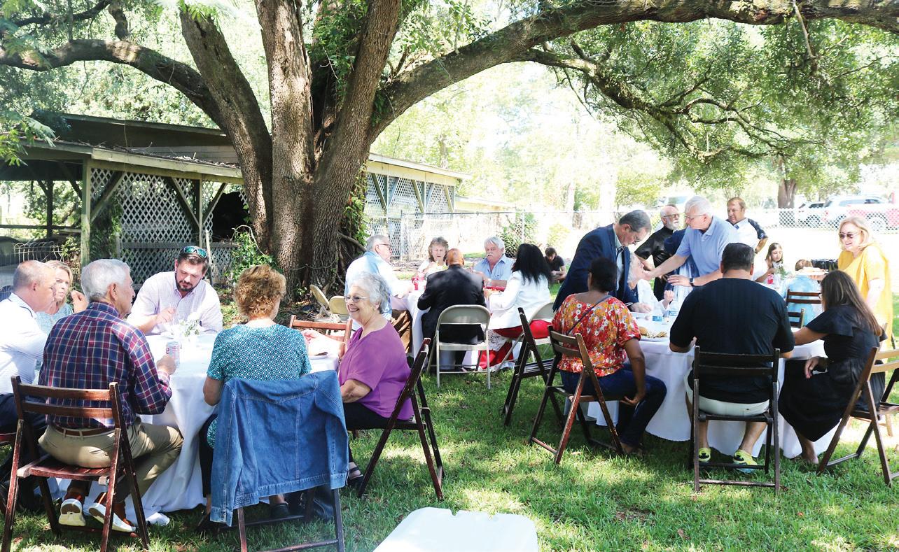 Beautiful weather provided for a wonderful outdoor gathering for the 150th anniversary of St. Joseph Church. On right, smokemaster Mac Fletcher of Daddy Mac's BBQ in action at the event. (Photos by Tereza Ma)