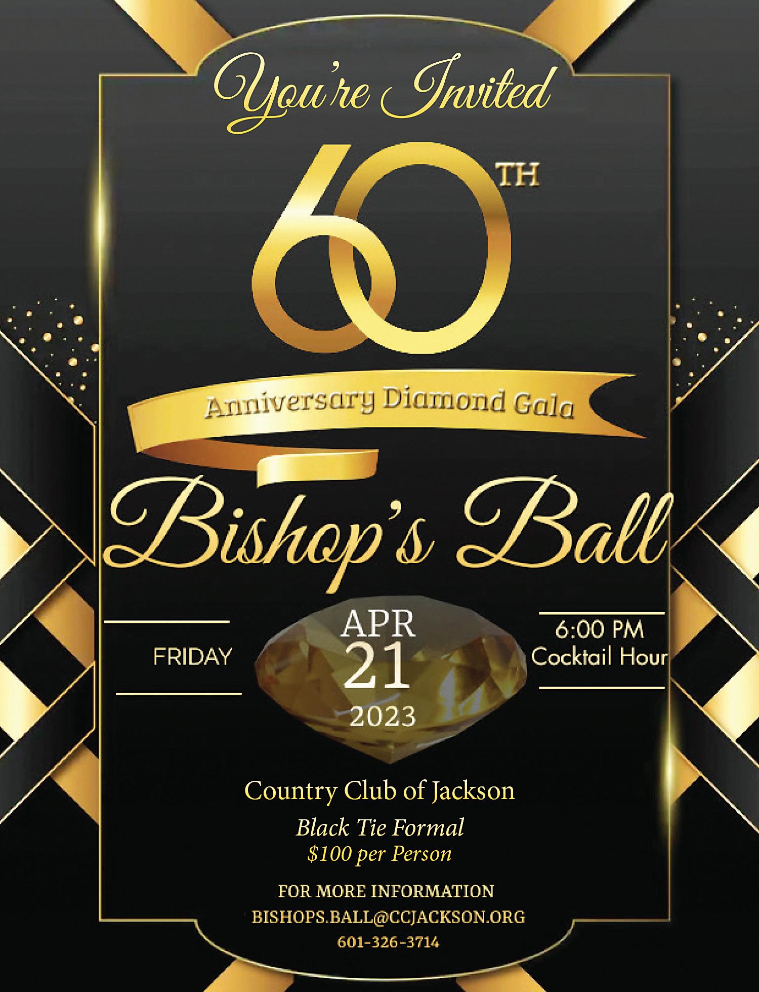 JACKSON St. Richard, Men’s Prayer Breakfast with Bishop Kopacz, Monday, April 3 at 7 a.m. in Foley Hall following Mass at 6:30 a.m. Details: contact Anthony at (601) 573-8574 or eanthonythomas@gmail.com.