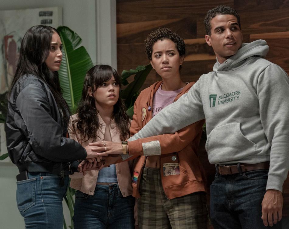 Melissa Barrera, Jenna Ortega, Jasmin Savoy Brown, and Mason Gooding star in a scene from the “Scream VI.” (OSV News photo/Philippe Bossé, Paramount Pictures and Spyglass Media Group’s)