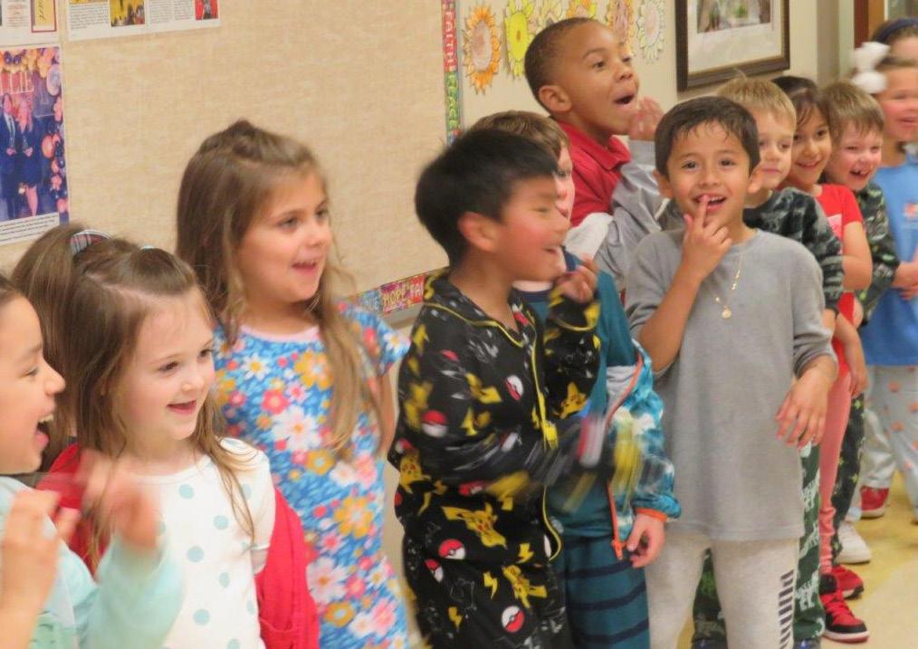 SOUTHAVEN – Scarlett, Maddie, Sadie, Luis, Kannon, Haziel, Jayce, Cash, Zahrah, and Jonas were all smiles when they saw the cat come into view. Pre-K and Kindergarteners celebrated Read Across America and Dr. Seuss’ birthday with a visit from the “Cat” himself. (Photo by