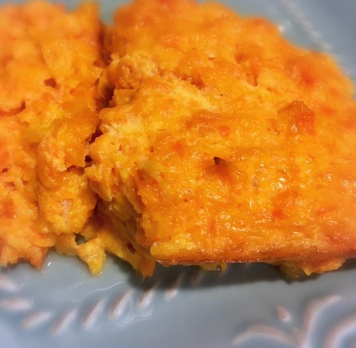 Pour into 1 1/2 qt casserole dish sprayed with Pam and bake at 350 degrees for 45 min. Top should be set and lightly browned. (I have tried this with canned carrots to save time and it does not taste the same!)